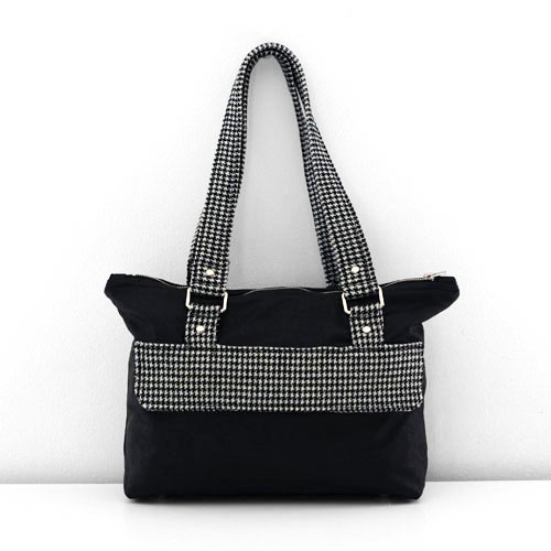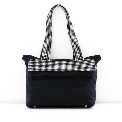 Extérieur : deux poches à soufflet devant et une poche zippée au dos cachée, sous un rabat.