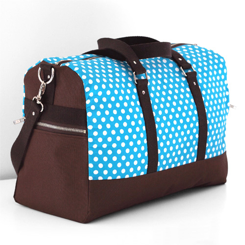 • Hanaé aime flâner cousu un sac weekend Boston en coton tropical et velours côtelé bleu ciel - Patron Sacôtin