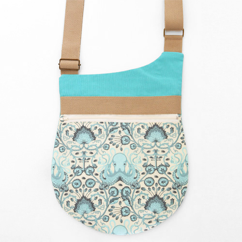 • Pochette Be-Bop bleu et beige cousu par Céline - Patron Sacôtin
