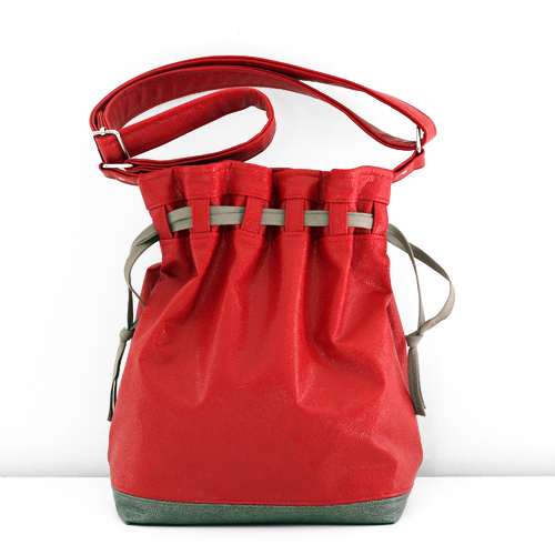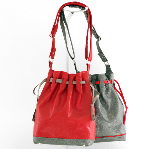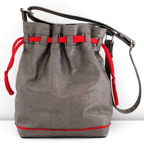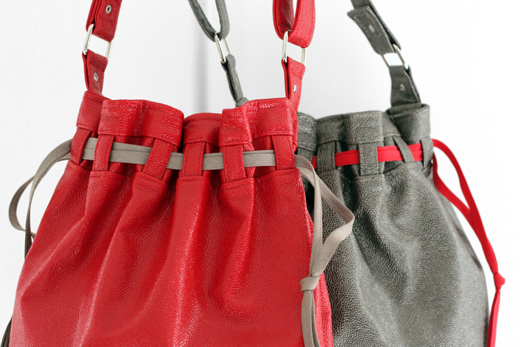 The belt loops and rectangular bottom of Calypso bring a modern twist to the classic shape of the bucket bag.