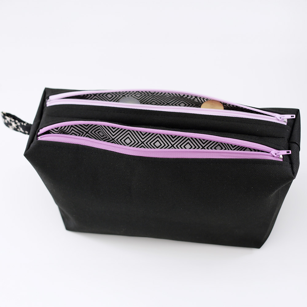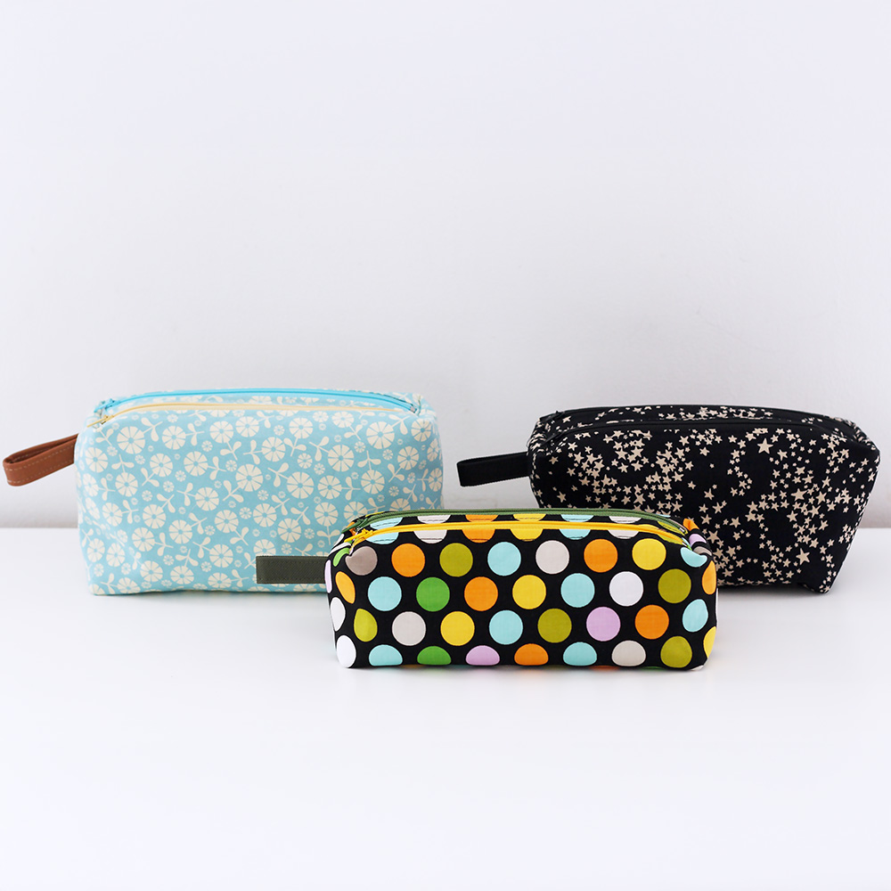 The pattern includes 3 versions, each available in 2 sizes for a choice of 6 Zip-Zip pouches to sew.